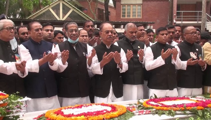 টুঙ্গিপাড়ায় বঙ্গবন্ধুর সমাধিতে কেন্দ্রীয় আওয়ামী লীগের শ্রদ্ধা