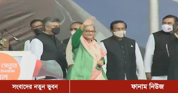 স্বপ্নের পদ্মা সেতু উদ্বোধন শেষে মাদারীপুরের শিবচর উপজেলার কাঁঠালবাড়িতে আয়োজিত জনসভায় যোগ দিয়েছেন প্রধানমন্ত্রী শেখ হাসিনা।