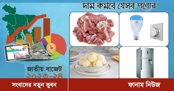 প্রস্তাবিত ২০২৩-২৪ অর্থবছরের জন্য সরকার সাত লাখ ৬১ হাজার ৭৮৫ কোটি টাকার বাজেট উপস্থাপন করেছে। প্রস্তাবিত বাজেটে মাংস, কৃষিপণ্যসহ কয়েকটি পণ্যের দাম কমানোর প্রস্তাব করা হয়েছে।