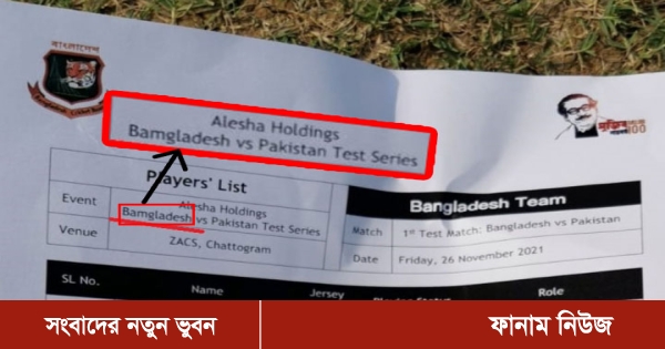 শুক্রবার প্রথম টেস্টে টসের পর সকাল সাড়ে ৯টায় গণমাধ্যমের কাছে অফিসিয়াল খেলোয়াড় তালিকা পাঠায় বিসিবি। তাতে প্লেয়ার তালিকায় ইভেন্টের ঘরে লেখা পাকিস্তানের বানান ঠিক থাকলেও ভুল হয় বাংলাদেশের বানান। বাংলাদেশের ইংরেজি বানানে N এর বদলে লেখা ছিল M। তাতে বাংলাদেশের বদলে শব্দটি হয়ে যায় "বামগ্লাদেশ (Bamgladesh) !"