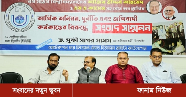 সংবাদ সম্মেলনে নর্থ সাউথ বিশ্ববিদ্যালয়কে বাঁচানোর জন্য প্রধানমন্ত্রীর হস্তক্ষেপ কামনা করে আজিম-কাসেম সিন্ডিকেটের দৃষ্টান্তমূলক শাস্তি দাবি করেন এই মানবাধিকারকর্মী।