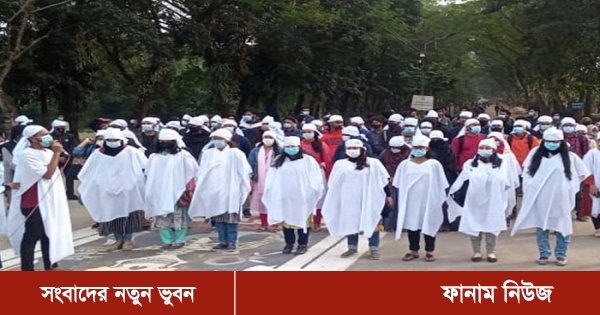 শনিবার (২২ জানুয়ারি) বিকেলে কাফন মিছিলটি বের করা হয়। এর আগে শিক্ষার্থীরা আমরণ অনশনে গেলে অনেকেই অসুস্থ হয়ে পড়লে হাসপাতালে নেওয়া হয়।