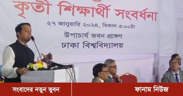 শনিবার (২৭ জানুয়ারি) বিকেলে ঢাকা বিশ্ববিদ্যালের উপাচার্য ভবন লনে শিক্ষার্থীদের সংবর্ধনা অনুষ্ঠানে এই কথা বলেন মন্ত্রী। পরীক্ষায় সর্বোচ্চ সিজিপিএপ্রাপ্ত প্রায় ২০০ শিক্ষার্থীকে সংবর্ধনা দেওয়া হয়।