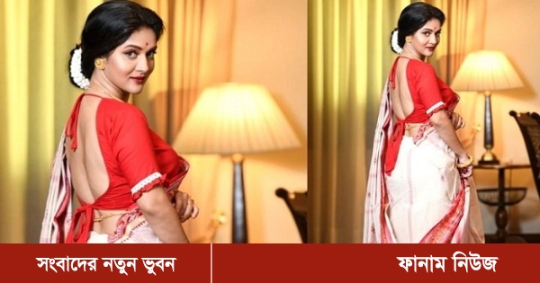 ছবিতে দেখা যায়, লালপেড়ে সাদা শাড়ি, লাল রঙের পিঠখোলা ব্লাউজ, খোপা করা চুলে জুঁই ফুলের মালা, কপালে লাল টিপ, তাকিয়ে আছেন ঘাড় ঘুরিয়ে বাঁকা চোখে; যেন সাক্ষাৎ দেবী! কিন্তু না, খেয়াল করলে দেখা যায়, তিনি আসলে অভিনেত্রী ও গায়িকা রাফিয়াত রশিদ মিথিলা।