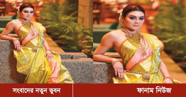ছবিতে দেখা যাচ্ছে, গোলাপি সিল্কের শাড়িতে চওড়া হলুদ পাড়। সামনে আঁচল দিয়ে শাড়িতে বাঙালিয়ানার ছাপ স্পষ্ট। তবে ব্লাউজ পরেননি জয়া। আদুল গায়েই জড়িয়েছেন শাড়ি। গলায় ভারী গয়না, কোমর বন্ধনী। টানটান করে খোঁপা বেঁধে তাতে সাদা ফুলের মালা লাগিয়েছেন নায়িকা।