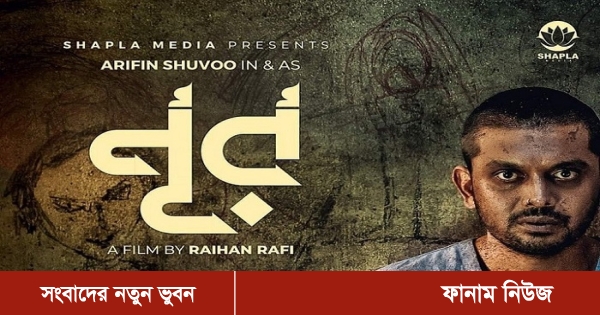 দেয়ালজুড়ে নানা আঁকিবুকি। দেয়াল ঘেঁষে পাতা বিছানায় বসে আছেন আরিফিন শুভ। তার মাথার চুলে কদমছাঁট। মুখে দাড়ি ও কাটাছেঁড়ার দাগ। জামা-কাপড়ে লেগে আছে ময়লা। বিধ্বস্ত শুভর হাতে এক নারীর ছবি, যার মুখ অস্পষ্ট। ‘নূর’ সিনেমার পোস্টারে এমন রূপে হাজির হয়েছেন শুভ। সূত্র: আরটিভি