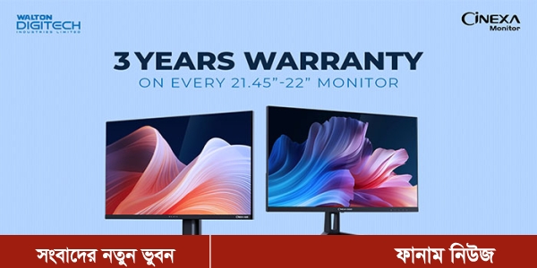 কম্পিউটারের মনিটরে ওয়ারেন্টি সুবিধা বাড়িয়েছে দেশের শীর্ষ প্রযুক্তিপণ্য প্রতিষ্ঠান ওয়ালটন ডিজি-টেক ইন্ডাস্ট্রিজ লিমিটেড। এখন ওয়ালটনের সিনেডি (CiNEd), সিনেক্সা (CiNEXA) এবং এসিসি (ACC) ব্র্যান্ডের ২২ ইঞ্চি পর্যন্ত সকল মডেলের মনিটরে ৩ বছর পর্যন্ত ওয়ারেন্টি পাবেন ক্রেতারা।