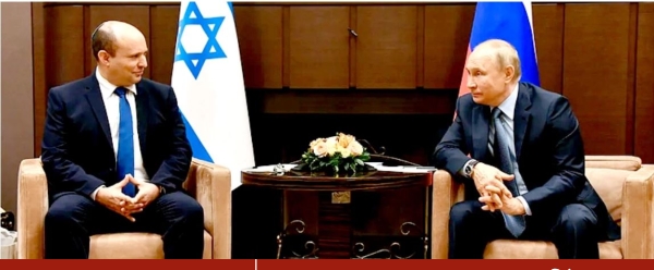 রুশ প্রেসিডেন্ট ভ্লাদিমির পুতিনের সঙ্গে সাক্ষাৎ করেছেন ইসরায়েলি প্রধানমন্ত্রী নাফতালি বেনেট। স্থানীয় সময় শনিবার (৫ মার্চ) মস্কোয় সাক্ষাতে মিলিত হন তারা। পুতিনের সাক্ষাৎ শেষে বেনেট ইউক্রেনের প্রেসিডেন্ট ভলোদিমির জেলেনস্কিকে ফোন করেন বলে তার এক মুখপাত্র জানান। খবর: রয়টার্সের।