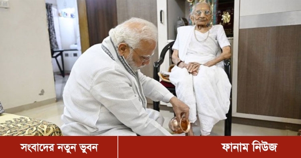মায়ের শততম জন্মদিনে তার পা ধুইয়ে দিয়ে আশীর্বাদ নিলেন ভারতের প্রধানমন্ত্রী নরেন্দ্র মোদী। মোদীর মা হীরাবেন মোদী শনিবার নিজের শততম জন্মদিনে পৌঁছেছেন। এদিন মাকে সময় দিতে রাজধানী দিল্লি থেকে গুজরাট গিয়েছেন নরেন্দ্র মোদী। শনিবার সকাল সকাল গুজরাটের গান্ধীনগর শহরে পৌঁছে যান মোদী। সেখানে তিনি মায়ের সঙ্গে সময় কাটান, তার পা ধুইয়ে দেন এবং আশীর্বাদ নেন।