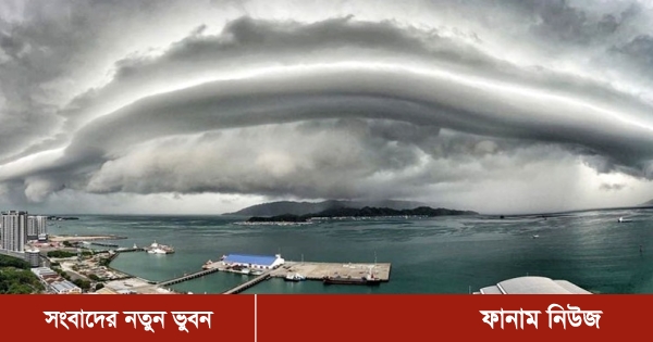 মালয়েশিয়ার সাবাহ রাজ্যের কোটা কিনাবালু শহরে সকালবেলা হঠাৎ করেই শুরু হয় ঝড়ো বাতাস এবং ভারি বৃষ্টি। ঘণ্টাখানেক স্থায়ী এই আবহাওয়া শহরের বাসিন্দাদের যতটা না হতভম্ব করেছে, তারচেয়ে বেশি চমকে দিয়েছে আকাশের চেহারা। কারণ ঝড়-বৃষ্টির আগে সেখানকার আকাশে দেখা গিয়েছিল মেঘের এক ‘অদ্ভূত’ রূপ।