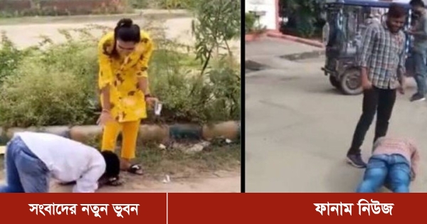 ভাইরাল ভিডিওতে দেখা গেছে, এক তরুণীর পা ধরে মাটিতে লম্বা হয়ে শুয়ে ভোট দেবেন কী না জানতে চাইছেন এক তরুণ। ওই তরুণী হেসে বলেছেন, হ্যাঁ, দেব। কিন্তু আগে পা তো ছাড়ুন।