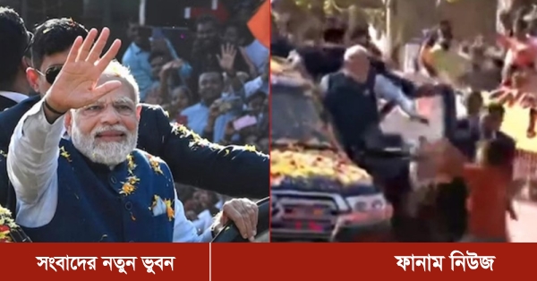 রোড শোতে গাড়ির দরজা খুলে জনতার উদ্দেশে হাত নাড়াচ্ছিলেন নরেন্দ্র মোদী। হঠাৎ নিরাপত্তার বেড়া টপকে তার খুব কাছে চলে আসে একটি ছেলে। সে হাতে থাকা ফুলের মালা প্রধানমন্ত্রীর গলায় পরাতে যাচ্ছিল। কিন্তু তার আগেই নিরাপত্তাকর্মীরা ছেলেটিকে টেনে সরিয়ে দেয়।