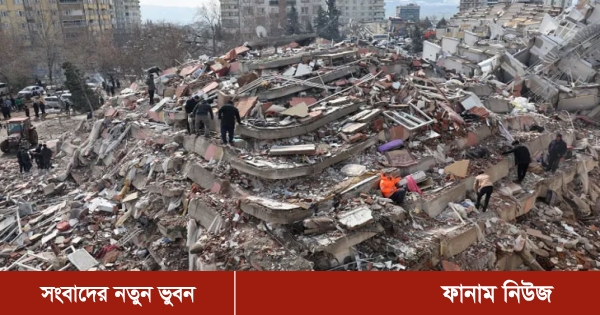 চারদিকে ভূমিকম্পে বিধ্বস্ত ভবনের ধ্বংসাবশেষ। ধ্বংসস্তূপে এখনো প্রাণের সন্ধানে জোরদার অভিযান চলছে। সময়ের সঙ্গে লড়াই করছেন উদ্ধারকর্মীরা।