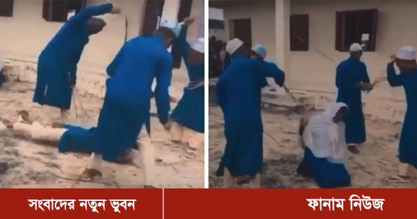শিক্ষকদের নির্দেশে মাদরাসার অন্য ছাত্ররা তাদের এ শাস্তি দিয়েছে।