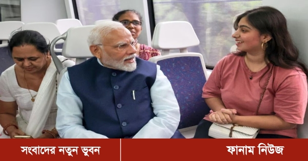 পাশের সিটে নিজেদের প্রধানমন্ত্রীকে দেখে আপ্লুত তরুণী। কখনো আবার মন দিয়ে শুনলেন বর্ষীয়ান এক ভদ্রলোকের কথা। হাত জড়ো করে মেট্রোর মধ্যে উপস্থিত সব যাত্রীর উদ্দেশে কুশলবিনিময়ও করতেও দেখা যায় তাকে।