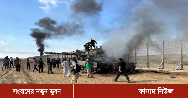 ইসরায়েলে হামাসের হামলা শুরুর পর একটি ভিডিও প্রকাশ করা হয়েছে। বার্তা সংস্থা রয়টার্সের হাতে আসা ওই ভিডিওতে দেখা গেছে, হামাস যোদ্ধাদের হাতে আটক একটি ইসরায়েলি ট্যাংকের ওপর উল্লাস করছেন ফিলিস্তিনিরা। এতে দেখা যায়, গাজায় ইসরায়েলের একটি সাঁজোয়া যান চালাচ্ছেন হামাস যোদ্ধারা।