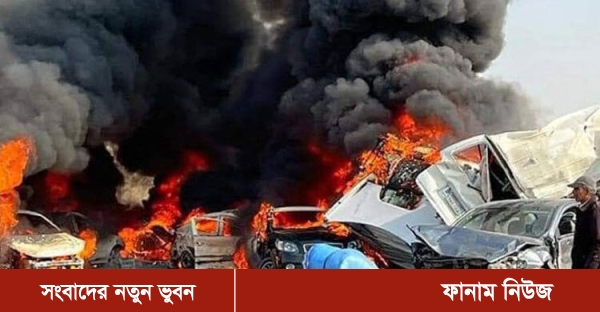 সামাজিক যোগাযোগমাধ্যমে প্রকাশিত ছবিতে দেখা গেছে, ওই সড়কটির দ্রুততম লেনে একটি লরি উল্টে পড়ে আছে। একটি বড় বাস ও একটি মিনিবাস আগুনে সম্পূর্ণ পুড়ে গেছে। এছাড়া কয়েকটি গাড়িতে আগুন জ্বলতে দেখা যায়।