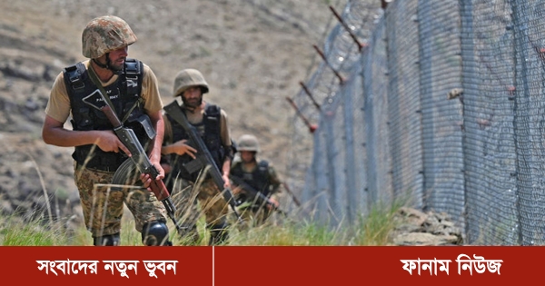 খাইবার পাখতুনখাওয়া প্রদেশের খাইবার জেলার বিগ বেন পোস্টে পাকিস্তান-আফগানিস্তান সীমান্তের বেড়ার পাশে টহল দিচ্ছে পাকিস্তানি সেনারা। ছবিটি ২০২১ সালের ৩ আগস্ট তোলা