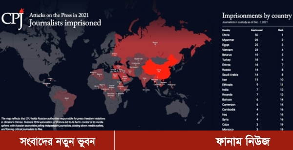সম্প্রতি সিপিজে জানায়, বিশ্বের পেশাগত দায়িত্ব পালনে ২০২১ সালে এতো সংখ্যক সাংবাদিক জেলে যাওয়ার ঘটনা নতুন রেকর্ড।