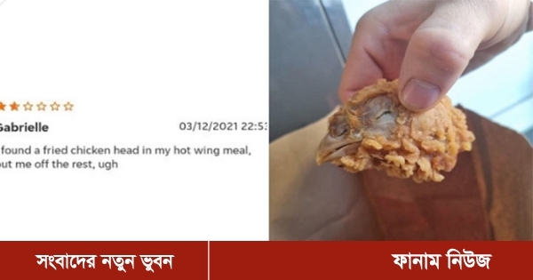 কেএফসির হট চিকেন উইংস খেতে গিয়ে তাতে কামড় দেওয়ার সাথে সাথে বেরিয়ে আসে ঠোঁট,পালকসহ মুরগির মাথা।