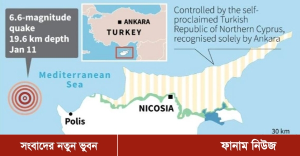 মঙ্গলবার (১১ জানুয়ারি) বাংলাদেশ সময় সকাল ৭টার দিকে ভূকম্পনটি আঘাত হানে বলে জানা গেছে। ইউএসজিএস জানিয়েছে, শক্তিশালী ভূকম্পনটি সাইপ্রাসের পশ্চিমাঞ্চলীয় উপকূলে আঘাত হানে। যার উৎপত্তিস্থল ছিল পশ্চিম-উত্তর-পশ্চিমাঞ্চলীয় পিলস শহর থেকে ৪৮ কিলোমিটার দূরে।