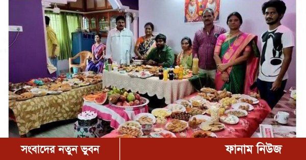 পরিবারটি হবু জামাইকে রাজকীয় ভোজ পরিবেশন করে, যেখানে ছিল ৩৬৫ পদের খাবার। তেলেগু ঐতিহ্যে জামাইকে বার্ষিক নবান্ন উৎসবে দাওয়াত করে খাওয়ানোর প্রচলন রয়েছে এবং পরিবারটি ৩৬৫ পদের খাবার প্রস্তুত করে হবু জামাইয়ের প্রতি ভালোবাসা প্রকাশ করেছে। খাবারের তালিকায় রয়েছে ৩০ প্রকারের তরকারি, ভাত, বিরিয়ানি, পুলিহরা, আধুনিক ও ঐতিহ্যবাহী ১০০ রকমের মিষ্টি, ১৫ ধরনের আইসক্রিম, পেস্ট্রি, কেক, ঠান্ডা ও গরম পানীয়, ফল।