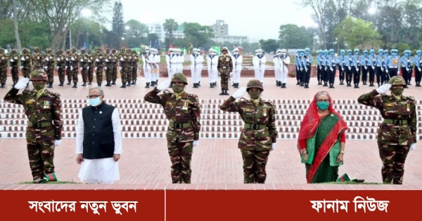 মহান স্বাধীনতা ও জাতীয় দিবস উপলক্ষে শনিবার ভোরে ৫টা ৫৫ মিনিটে সাভারে জাতীয় স্মৃতিসৌধের শহীদ বেদিতে ফুল দিয়ে মুক্তিযুদ্ধে বীর শহীদদের প্রতি শ্রদ্ধা নিবেদন করেছেন রাষ্ট্রপতি মো. আবদুল হামিদ ও প্রধানমন্ত্রী শেখ হাসিনা।