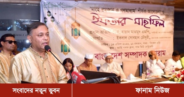 গতকাল রাজধানীর কুর্মিটোলায় পাম ভিউ রেস্তোরাঁয় আয়োজিত অনুষ্ঠানে মাহফিলে সাংবাদিকদের প্রশ্নের জবাবে মন্ত্রী এ কথা বলেন। ‘মাহে রমজান ও গণমাধ্যম’ শীর্ষক আলোচনা ও ইফতার মাহফিলের আয়োজন করে বাংলাদেশ সম্পাদক ফোরাম।