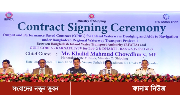 বিশ্বব্যাংকের অর্থায়নে অভ্যন্তরীণ নৌপথে যাত্রী ও পণ্য পরিবহনের জন্য চট্টগ্রাম-ঢাকা-আশুগঞ্জ অঞ্চলের নৌ-করিডোরের সক্ষমতা ও নিরাপত্তা ব্যবস্থার উন্নয়ন সাধন এবং এটিকে টেকসই খাত হিসেবে প্রতিষ্ঠিত করার লক্ষ্যে চুক্তিপত্র স্বাক্ষর অনুষ্ঠিত হয়েছে।