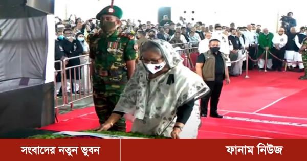 পরে দলের পক্ষ থেকে প্রধানমন্ত্রীর সঙ্গে দলীয় সাধারণ সম্পাদক ওবায়দুল কাদেরও ফুল দিয়ে শ্রদ্ধা জানান।