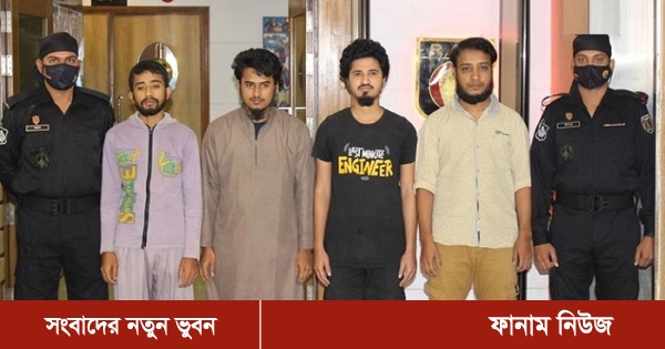গ্রেফতাররা হলেন- আব্দুল কাদের ওরফে সুজন ওরফে ফয়েজ ওরফে সোহেল (২৪), ইসমাইল হোসেন ওরফে হানজালা ওরফে মানসুর (২২), মুনতাছির আহম্মেদ ওরফে বাচ্চু (২৩) ও হেলাল আহমেদ জাকারিয়া (৩৩)।
