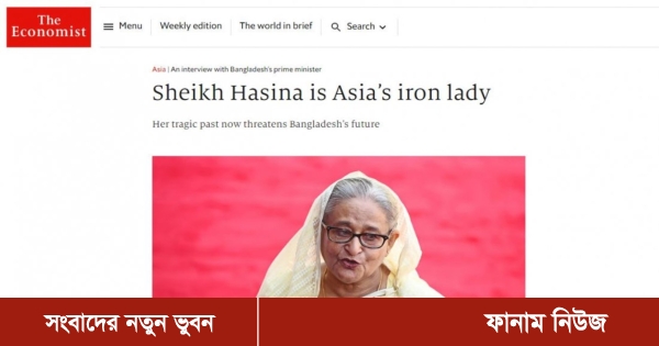 প্রধানমন্ত্রী শেখ হাসিনাকে এশিয়ার লৌহমানবী হিসেবে উল্লেখ করেছে ব্রিটিশ সাময়িকী দ্য ইকোনমিস্ট। শেখ হাসিনার সাক্ষাৎকারের ওপর ভিত্তি করে একটি প্রতিবেদন তৈরি করেছে গণমাধ্যমটি। এতে মার্গারেট থ্যাচার ও ইন্দিরা গান্ধীর সঙ্গে তাকে তুলনা করা হয়েছে।