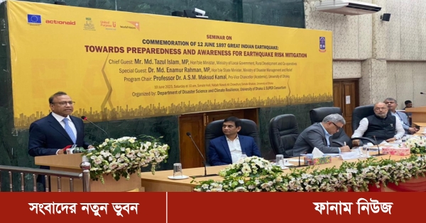 তিনি আজ ঢাকা বিশ্ববিদ্যালয়ের নবাব নওয়াব আলী চৌধুরী সিনেট ভবনের সিনেট হলে ‘১৮৯৭ সালের ১২ জুন ভারতীয় উপমহাদেশের মহাভূমিকম্প স্মরণে ভূমিকম্প ঝুঁকি নিরসনে প্রস্তুতি এবং সতর্কতা’ বিষয়ক এক সেমিনারে প্রধান অতিথির বক্তব্যে এ কথা বলেন।