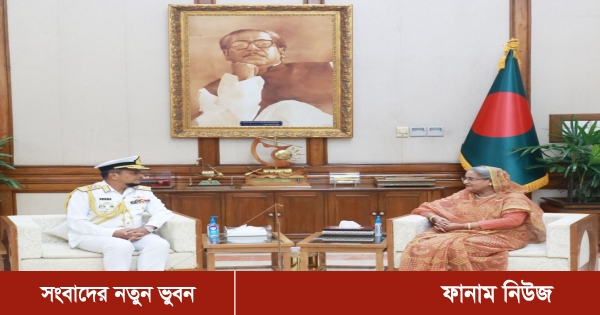 নবনিযুক্ত নৌবাহিনী প্রধান ভাইস অ্যাডমিরাল এম নাজমুল হাসান প্রধানমন্ত্রী শেখ হাসিনার সঙ্গে তার সরকারি বাসভবন গণভবনে সৌজন্য সাক্ষাৎ করেছেন।