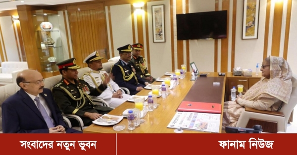এরপর সেনাবাহিনী প্রধান জেনারেল এস এম শফিউদ্দিন আহমেদ, নৌবাহিনী প্রধান এডমিরাল এম নাজমুল হাসান ও বিমান বাহিনী প্রধান এয়ার চীফ মার্শাল শেখ আব্দুল হান্নান প্রধানমন্ত্রীর সাথে তার কার্যালয়ে সৌজন্য সাক্ষাৎ করেন। প্রধানমন্ত্রীর নিরাপত্তা উপদেষ্টা মেজর জেনারেল তারিক আহমেদ সিদ্দিক (অব.) এ সময় উপস্থিত ছিলেন।