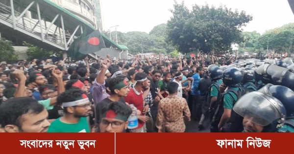 অন্যদিকে শাহবাগের মেট্রোরেল স্টেশনের নিচে পুলিশ সদস্যরা অবস্থান করছেন। সেখানেও কিছুক্ষণ পরপর আন্দোলনকারীরা পুলিশের সামনে গিয়ে ‘ভুয়া ভুয়া’ স্লোগান দিচ্ছেন।