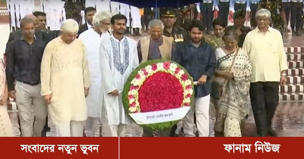 শুক্রবার (৯ আগস্ট) সকাল ৯টা ৫০ মিনিটের দিকে প্রধান উপদেষ্টা মহান মুক্তিযুদ্ধে শহীদদের প্রতি শ্রদ্ধা নিবেদন করেন তিনি। এ সময় তার সঙ্গে অন্য উপদেষ্টারাও ছিলেন।