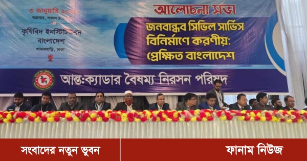 শুক্রবার (৩ জানুয়ারি) সকালে রাজধানীর খামারবাড়ি কৃষিবিদ ইনস্টিটিউশন (কেআইবি) মিলনায়তনে আন্তঃক্যাডার বৈষম্য নিরসন পরিষদের উদ্যোগে আয়োজিত ‘জনবান্ধব সিভিল সার্ভিস বিনির্মাণে করণীয়: প্রেক্ষিত বাংলাদেশ’ শীর্ষক আলোচনা সভার বক্তারা এই আহ্বান করেছেন। সভায় সিভিল সার্ভিস সংস্কারের মাধ্যমে জনকল্যাণমূলক রাষ্ট্র গঠনে করণীয় বিষয়ে আলোচনা করা হয়।