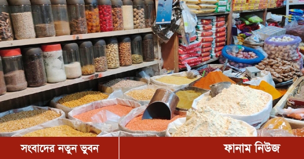 দোকানীদের সঙ্গে কথা বলে জানা গেছে, আজ বাজারে বিদেশি ছোলা বিক্রি হচ্ছে ১১০-১১৫ টাকা কেজি দরে। এছাড়া বুটের বেসন ৯০-১৪০ টাকা, খোলা আটা ৪২ টাকা কেজিতে বিক্রি হচ্ছে। এছাড়া প্যাকেট আটা ২ কেজি ১০০ টাকা, খোলা চিনির কেজি ১২০ টাকা, দেশি চিনি ১৪৫ টাকা, সয়াবিন এক লিটার ১৭৫ টাকা, দুই লিটার ৩৫০ টাকা ও ৫ লিটার ৮৫০ টাকা, দেশি মসুর ডাল ১৩৫ টাকা ও ভারতীয় ১১০ টাকা, চিনি আতপ চাল ১১০-১৩৫ টাকা, মিনিকেট চাল ৬৫-৮০ টাকা, নাজিরশাল চাল ৬৫-৯০ টাকা, আস্ত বুটের ডাল ১২০ টাকা, এঙ্কার ৭০ টাকা, খোলা হলুদ গুঁড়া ৪০০ টাকা, খোলা মরিচ গুড়া ৫০০ টাকা, দেশি পেঁয়াজ ৪৫ টাকা ও বড় পেঁয়াজ ৬৫ টাকা, আদা ১৩০-২০০ টাকা, রসুন ১৫০-২৩০ টাকা, আলু ২৫ টাকা মুড়ি ৮৫ টাকা এবং বিভিন্ন খেজুর ২১০ থেকে ৪৪০ টাকা কেজি দরে বিক্রি হচ্ছে।