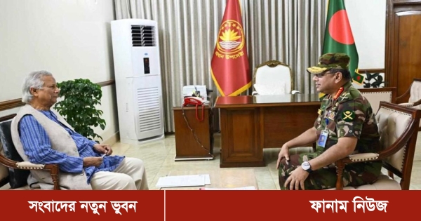 আইএসপিআর আরও জানায়, জুলাই গণঅভ্যুত্থানে আহতদের সম্মানে দেশের সব সেনানিবাসে ইফতার ও দোয়া মাহফিলের আয়োজন এবং আহত যোদ্ধা ও শহীদ যোদ্ধাদের পরিবারকে বাংলাদেশ সেনাবাহিনীর উদ্যোগে আর্থিক সহযোগিতা দেওয়ার বিষয়েও প্রধান উপদেষ্টাকে অবহিত করা হয়। পরিশেষে, সেনাবাহিনী প্রধান প্রধান উপদেষ্টাকে অগ্রিম ঈদ শুভেচ্ছা জানান।
