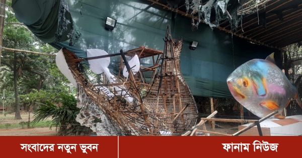 শনিবার (১২ এপ্রিল) সকাল সাড়ে ১১টায় সরেজমিনে দেখা যায়, চারুকলা ইনস্টিটিউটের ভেতরে পহেলা বৈশাখ উদযাপন উপলক্ষ্যে বিভিন্ন আকৃতির প্রতিকৃতি তৈরি করা হচ্ছে। সেখানে ‘ফ্যাসিবাদী মুখাকৃতি’ আগুনে সম্পূর্ণভাবে পুড়ে গেছে। শান্তির প্রতীক পায়রাটিও আগুনে ব্যাপকভাবে ক্ষতিগ্রস্ত হয়েছে। এছাড়া একটি বাঘ আকৃতির প্রতিকৃতির লেজ আগুনে পুড়ে গেছে।