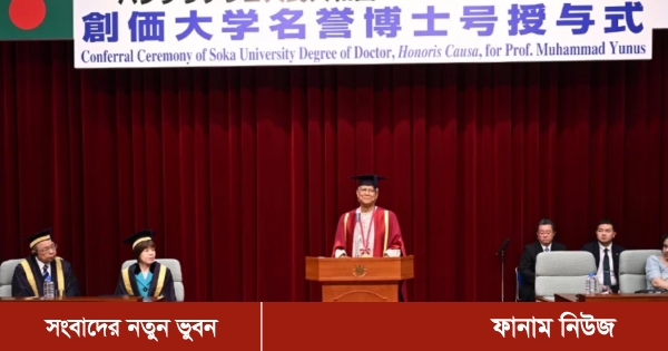 অনুষ্ঠানে সোকা বিশ্ববিদ্যালয় থেকে ড. ইউনূসকে সম্মানসূচক ডক্টরেট ডিগ্রি প্রদান করা হয়।