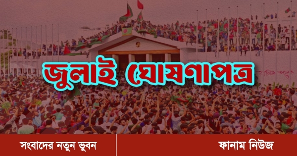রাজধানীর মানিক মিয়া অ্যাভিনিউয়ে আয়োজিত জুলাই পুনর্জাগরণ অনুষ্ঠানে প্রধান উপদেষ্টা এই ঐতিহাসিক ঘোষণাপত্র পাঠ করেন।