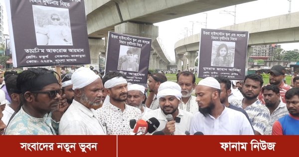 সকালে মাইলস্টোন ট্র্যাজেডি সুষ্ঠু তদন্ত ও বিচারের দাবিতে স্কুল সংলগ্ন মেট্রোস্টেশন ডিপোর সামনে মানববন্ধন ও বিক্ষোভ করেন নিহত শিক্ষার্থীদের অভিভাবকরা।