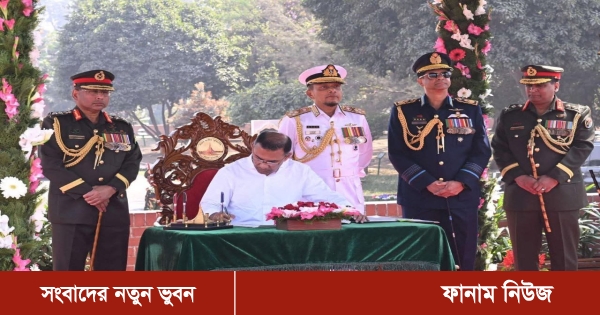 পরিদর্শন বইয়ে তারিখের জায়গায় বাংলায় আজকের ১৮-২-২০২৬ তারিখ লিখেছেন তিনি। পদবীর জায়গায় লেখেন, মাননীয় প্রধানমন্ত্রী গণপ্রজাতন্ত্রী বাংলাদেশ সরকার।