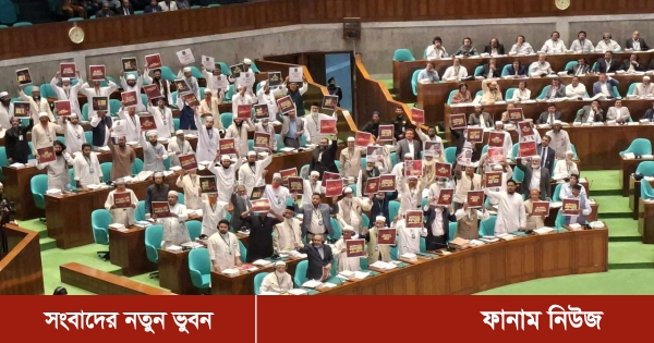 এসময় জামায়াতের নেতৃত্বাধীন বিরোধীদলীয় সংসদ সদস্যরা ‘জুলাইয়ের সঙ্গে বিশ্বাসঘাতকতা বন্ধ কর’ লেখা সম্বলিত প্ল্যাকার্ড প্রদর্শন করেন।