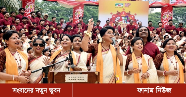 ভোর সাড়ে ৬টায় রেজওয়ান চৌধুরী বন্যার নেতৃত্বে ‘তুমি নির্মল করো, মঙ্গল করো’ গান পরিবেশিত হলে পুরো পরিবেশ আরও প্রাণবন্ত হয়ে ওঠে।