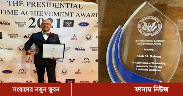 যুক্তরাষ্ট্রের টেক্সাস অঙ্গরাজ্যের বাংলাদেশ অ্যাসোসিয়েশন অব হিউস্টনের সাবেক চেয়ারম্যান শাহ হালিম এ বছর যুক্তরাষ্ট্রের প্রেসিডেন্ট লাইফটাইম অ্যাওয়ার্ড বা প্রেসিডেন্টের আজীবন সম্মাননা পেয়েছেন। তার এ অর্জনে উক্ত সংগঠনসহ প্রবাসী বাংলাদেশিরা অভিনন্দন জানিয়েছেন।