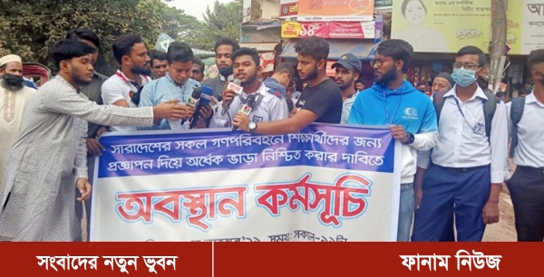 সরকারিভাবে প্রজ্ঞাপন দিয়ে শিক্ষার্থীদের জন্য সারাদেশের সব গণপরিবহনে অর্ধেক ভাড়া কার্যকর করা এবং ছাত্রী ও নারীদের জন্য নিরাপদ যাত্রা নিশ্চিত করতে দুটি দাবি জানান তারা।
