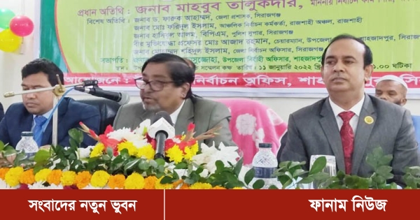 বক্তব্য রাখেন- শাহজাদপুর উপজেলা চেয়ারম্যান প্রফেসর আজাদ রহমান, সিরাজগঞ্জ জেলা নির্বাচন অফিসার মোহাম্মদ শহিদুল ইসলাম, পৌর মেয়র মনির আক্তার খান তরু লোদী, শাহজাদপুর উপজেলা নির্বাচন কর্মকর্তা মো. জাহাঙ্গীর হোসেন প্রমুখ।
